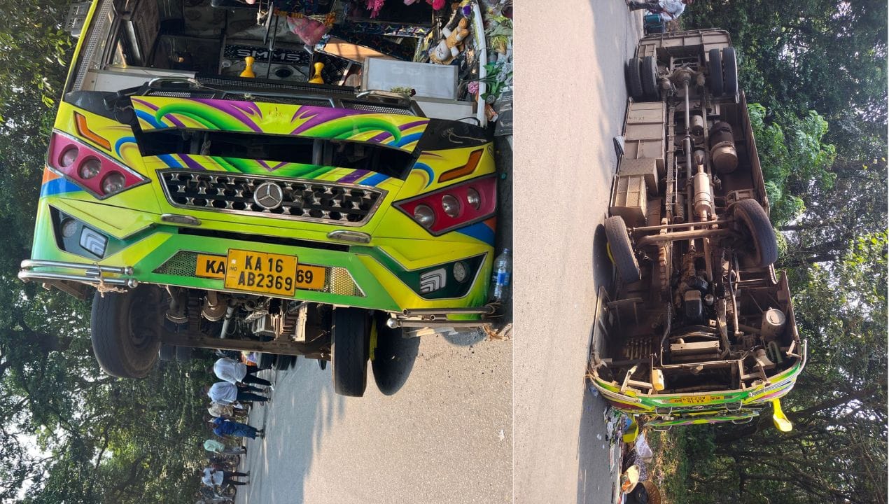 ಮೂಡಿಗೆರೆ: ದಕ್ಷಿಣ ಕನ್ನಡ ಹಾಗೂ ಚಿಕ್ಕಮಗಳೂರನ್ನು ಸಂಪರ್ಕಿಸುವ ಚಾರ್ಮಾಡಿ ಘಾಟ್ನ ನಾಲ್ಕನೇ ತಿರುವಿನಲ್ಲಿ ಖಾಸಗಿ ಬಸ್ಸೊಂದು ಪಲ್ಟಿಯಾಗಿದೆ. ಈ ದುರ್ಘಟನೆಯಲ್ಲಿ ಸುಮಾರು 20ಕ್ಕೂ ಹೆಚ್ಚು ಪ್ರಯಾಣಿಕರು ಗಾಯಗೊಂಡಿದ್ದು, ಮದುವೆ ಸಮಾರಂಭ ಮುಗಿಸಿ ಧರ್ಮಸ್ಥಳದಿಂದ ತುಮಕೂರು ಜಿಲ್ಲೆಯ ಪಾವಗಡಕ್ಕೆ ವಾಪಸ್ಸು ಪ್ರಯಾಣಿಸುತ್ತಿದ್ದ ವೇಳೆ ಈ ಅವಘಡ ನಡೆದಿದೆ. ಘಟನೆ ನಡೆದ ಕೂಡಲೇ ಕಾರ್ಯಪ್ರವೃತ್ತರಾದ ಸ್ಥಳೀಯರು ಗಾಯಾಳುಗಳನ್ನು ರಕ್ಷಿಸಿದ್ದು, ಆಂಬುಲೆನ್ಸ್ಗಳಲ್ಲಿ ಗಾಯಾಳುಗಳನ್ನು ಕೂಡಲೇ ಆಸ್ಪತ್ರೆಗೆ ರವಾನಿಸಿದ್ದಾರೆ. ಗಾಯಗೊಂಡವರನ್ನು ಕಕ್ಕಿಂಜೆಯ ಕೃಷ್ಣ ಆಸ್ಪತ್ರೆ ಹಾಗೂ ಬೆಳ್ತಂಗಡಿ ಆಸ್ಪತ್ರೆಗಳಿಗೆ ದಾಖಲಿಸಲಾಗಿದ್ದು, ಇವರಲ್ಲಿ ಕೆಲವರ ಸ್ಥಿತಿ ಗಂಭೀರವಾಗಿದೆ ಎಂದು ತಿಳಿದುಬಂದಿದೆ. ವಿಷಯ ತಿಳಿಯುತ್ತಿದ್ದಂತೆಯೇ ದಕ್ಷಿಣ ಕನ್ನಡ ಹಾಗೂ ಚಿಕ್ಕಮಗಳೂರು ಜಿಲ್ಲಾ ವ್ಯಾಪ್ತಿಯ ಬಣಕಲ್ ಮತ್ತು ಬೆಳ್ತಂಗಡಿ ಪೊಲೀಸರು ಸ್ಥಳಕ್ಕೆ ಭೇಟಿ ನೀಡಿ ಪರಿಶೀಲನೆ ನಡೆಸುತ್ತಿದ್ದಾರೆ. ಚಾರ್ಮಾಡಿ ಘಾಟ್ನ ಕಡಿದಾದ ತಿರುವಿನಲ್ಲಿ ಚಾಲಕನ ನಿಯಂತ್ರಣ ತಪ್ಪಿ ಈ ಅಪಘಾತ ಸಂಭವಿಸಿರುವ ಸಾಧ್ಯತೆಯಿದೆ.