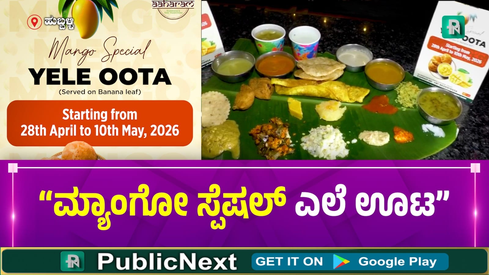 ಪ್ರತಿವರ್ಷದಂತೆ ಈ ಬೇಸಿಗೆಯ ಸೀಸನ್ಗೆ ಮಾವಿನಹಣ್ಣಿನ ವಿಶೇಷ ಊಟವನ್ನು ಸವಿಯಲು ಹುಬ್ಬಳ್ಳಿಯ ಆಹಾರ ಪ್ರಿಯರಿಗೆ ಮತ್ತೆ ರುಚಿ ಸವಿಯುವ ಸುವರ್ಣಾವಕಾಶ. ದೇಶಪಾಂಡೆ ನಗರದ “ಆಹಾರಂ” ಹೋಟೆಲ್ನಲ್ಲಿ ಏಪ್ರಿಲ್ 28ರಿಂದ ಮೇ 10, 2026ರವರೆಗೆ “ಮ್ಯಾಂಗೋ ಸ್ಪೆಷಲ್ ಎಲೆ ಊಟ”ವನ್ನು ಶುರುಮಾಡಲಾಗಿದೆ.