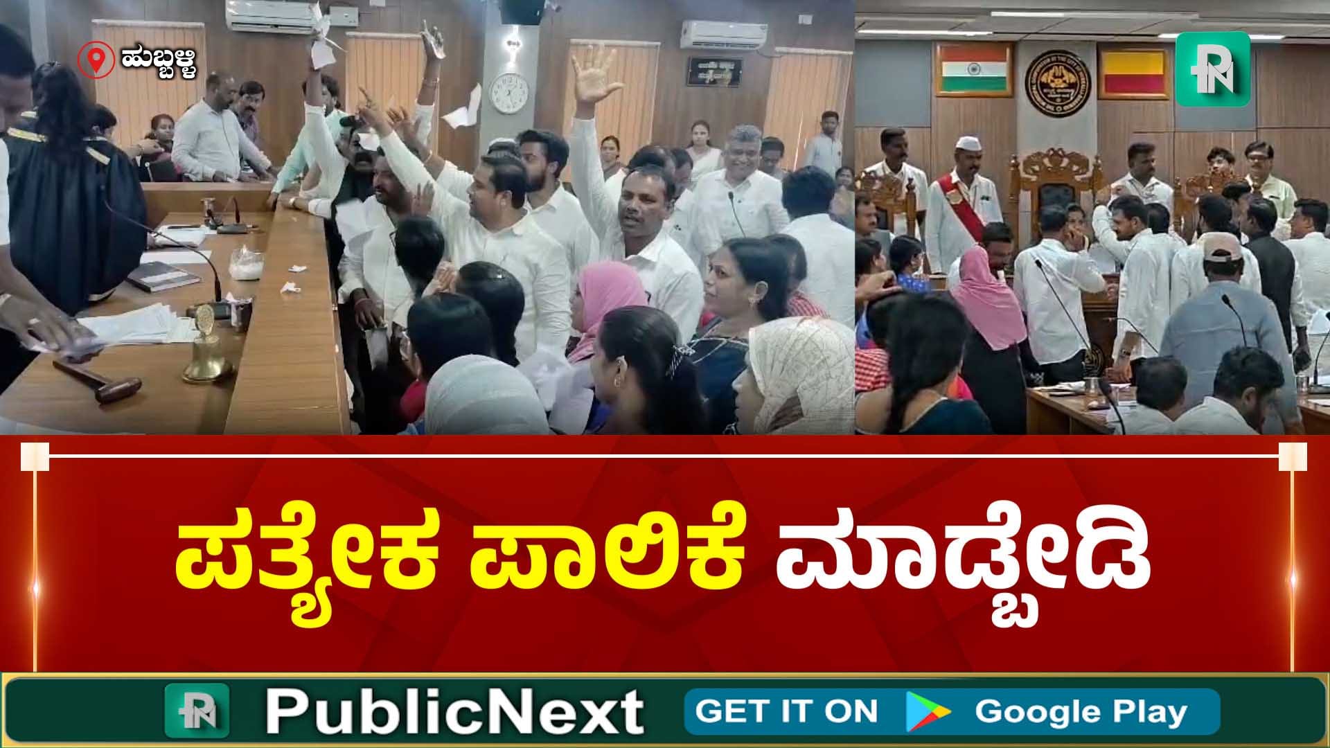ಧಾರವಾಡ ಪ್ರತ್ಯೇಕ ಪಾಲಿಕೆ ರದ್ದು ಮಾಡಿ ಬೃಹತ್ ಹುಬ್ಬಳ್ಳಿ ಧಾರವಾಡ ಮಹಾನಗರ ಪಾಲಿಕೆ ಅಂತ ಘೋಷಣೆ ಮಾಡಲು ಸರ್ಕಾರಕ್ಕೆ ಪ್ರಸ್ತಾಪ ಸಲ್ಲಿಸಲು ಸಭೆಯಲ್ಲಿ ಠರಾವು ಮಾಡಿದರು. ಆದರೆ ಯಾವ ಸದಸ್ಯರಿಗೂ ಚರ್ಚೆ ಮಾಡದೆ ಠರಾವು ಪಾಸು ಮಾಡಿದ್ದಕ್ಕೆ ಪಾಲಿಕೆಯ ಕೈ ಸದಸ್ಯರು ಪೇಪರ್ ಹರಿದು ಹಾಕಿ, ಮೇಯರ್ ಪೀಠದ ಮುಂದೆ ಹೋಗಿ ಪ್ರತಿಭಟನೆ ಮಾಡಿದರು. ಮೇಯರ್ ಮತ್ತು ಬಿಜೆಪಿ ಸದಸ್ಯರ ವಿರುದ್ಧ ಕೈ ಸದಸ್ಯರಿಂದ ಆಕ್ರೋಶ ವ್ಯಕ್ತಪಡಿಸಿದರು.