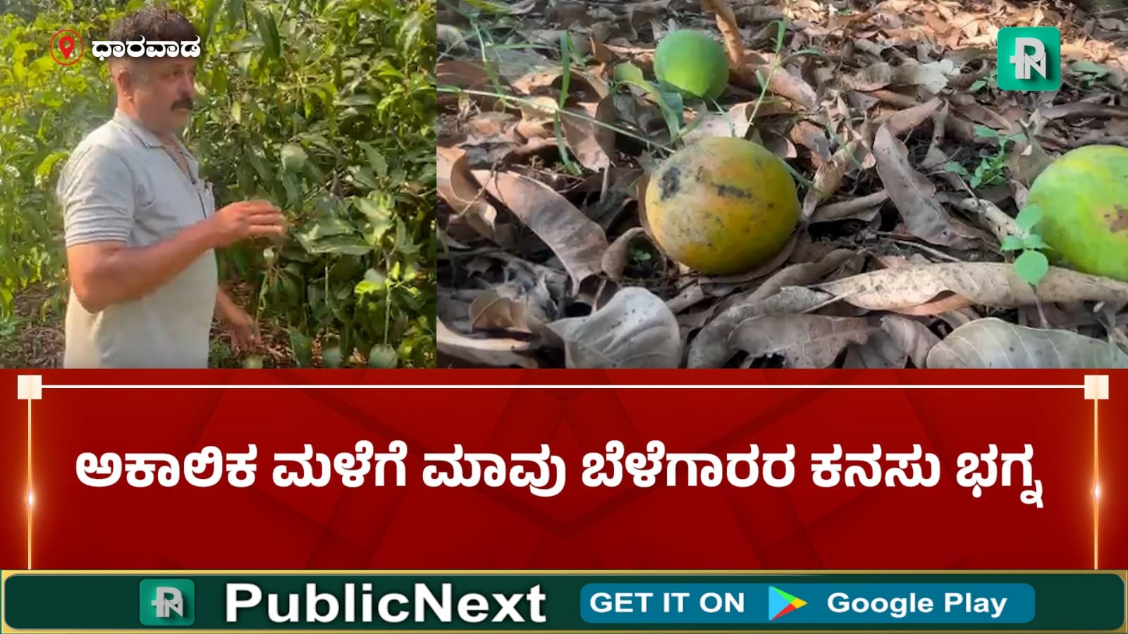 ಧಾರವಾಡ: ಅಕಾಲಿಕ ಮಳೆಗೆ ಉದುರಿ ಬಿದ್ದಿರುವ ಮಾವಿನ ಹಣ್ಣುಗಳು.. ಉದುರಿ ಬಿದ್ದಿರುವ ಮಾವಿನ ಹಣ್ಣು ಆರಿಸುತ್ತಿರುವ ರೈತರು.. ಮತ್ತೊಂದೆಡೆ ಕಪ್ಪು ಚುಕ್ಕೆ ರೋಗಕ್ಕೆ ತುತ್ತಾಗಿ ಕೊಳೆತ ಹಣ್ಣು. ಈ ಎಲ್ಲ ದೃಶ್ಯ ಕಂಡು ಬಂದಿದ್ದು ಧಾರವಾಡದಲ್ಲಿ.