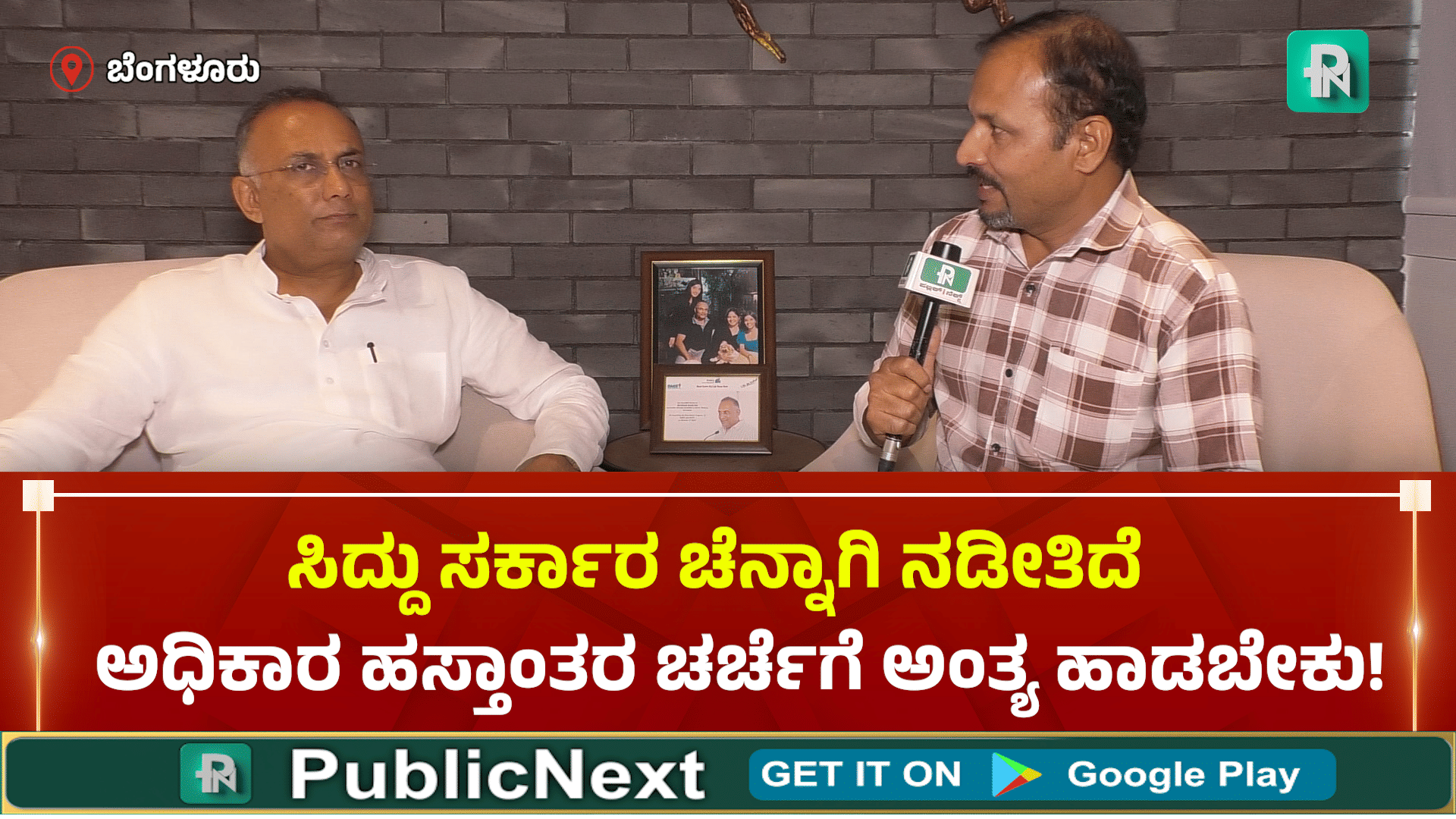 ಇಂದು ಗಾಂಧಿನಗರದ ಅವರ ಕಚೇರಿಯಲ್ಲಿ 'ಪಬ್ಲಿಕ್ ನೆಕ್ಸ್ಟ್'ನ ವೀಕ್ಷಕರಿಗಾಗಿ ನಮ್ಮ ಪ್ರತಿನಿಧಿ ಚೆನ್ನವೀರ ಸಗರನಾಳ್ ಅವರು ಸಚಿವ ದಿನೇಶ್ ಗುಂಡೂರಾವ್ ಅವರೊಂದಿಗೆ ವಿಶೇಷ ಸಂದರ್ಶನ ನಡೆಸಿದ್ದು, ಸಚಿವ ದಿನೇಶ್ ಗುಂಡೂರಾವ್ ಅವರು ತಮ್ಮ ಅಭಿಪ್ರಾಯವನ್ನು ಮುಕ್ತವಾಗಿ ಹಂಚಿಕೊಂಡಿದ್ದಾರೆ.